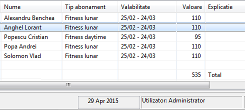 În lista abonamentelor, coloana cu valoarea abonamentului va fi ascunsă pentru utilizatorii cu această restrictie. Un administrator va vedea atât valorile abonamentelor, cât si totalul lor.
