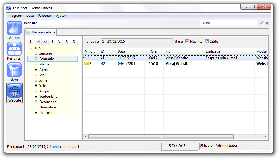 Acest modul permite vizualizarea mesajelor primite de pe pagina site-ului care contine un formular de contact.