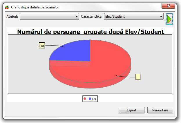 Se compune un grafic de tip plăcintă cu valorile unui anumit câmp.