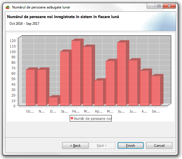Arata cate persoane noi au fost înregistrate în program în fiecare luna din perioada aleasa.