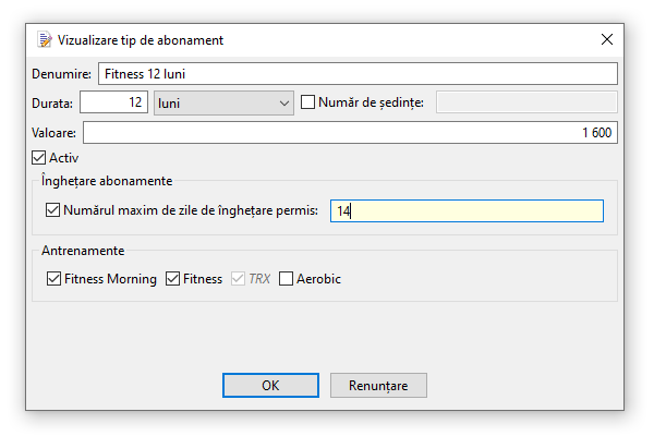 Pentru început, se definește un număr maxim de zile permis pe fiecare tip de abonament.