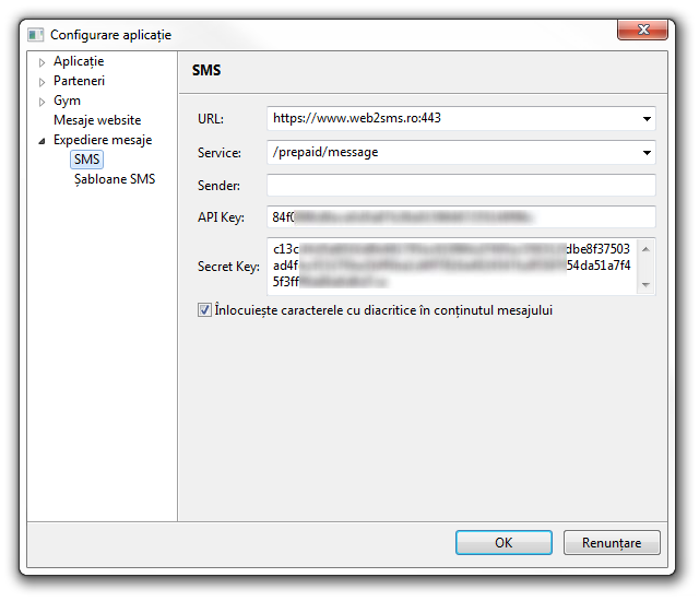 Pentru activarea de SMS-uri, este necesară înregistrarea unor date de la un furnizor de servicii de acest fel, de exemplu www.web2sms.ro.