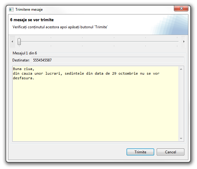 Modulul acesta permite trimiterea partenerilor de mesaje text pe telefon. La fel ca în modulul de trimitere e-mail, după selectarea partenerilor doriți, se va trimite acestora un mesaj predefinit într-un șablon.